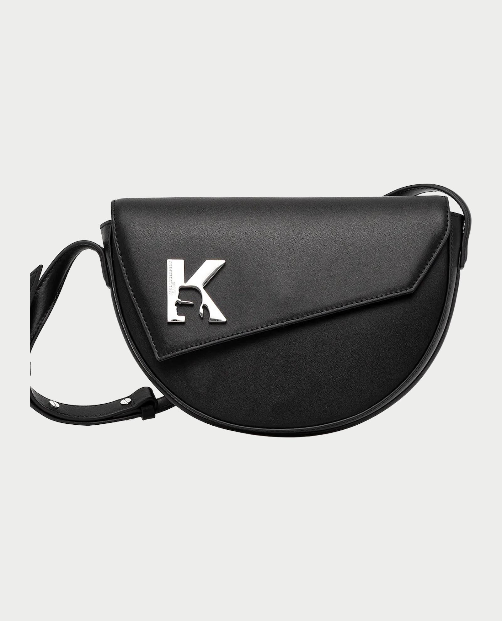 Borsetta per donna firmata Karl Lagerfeld in pelle e dal design a mezzaluna. Apertura magnetica asimmetrica, dettaglio metallico logato, tasca interna con cerniera. Misure: 20x15x5cm