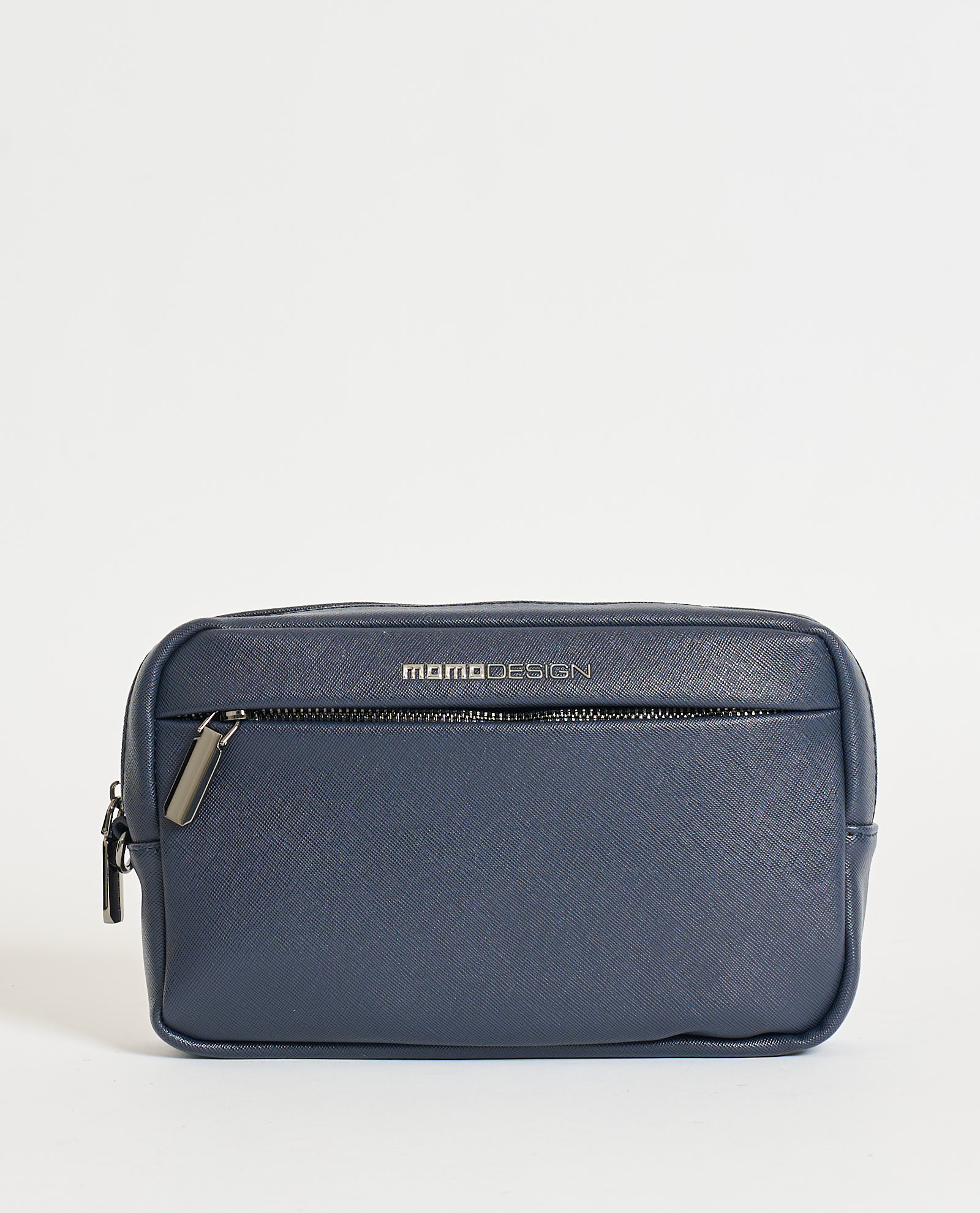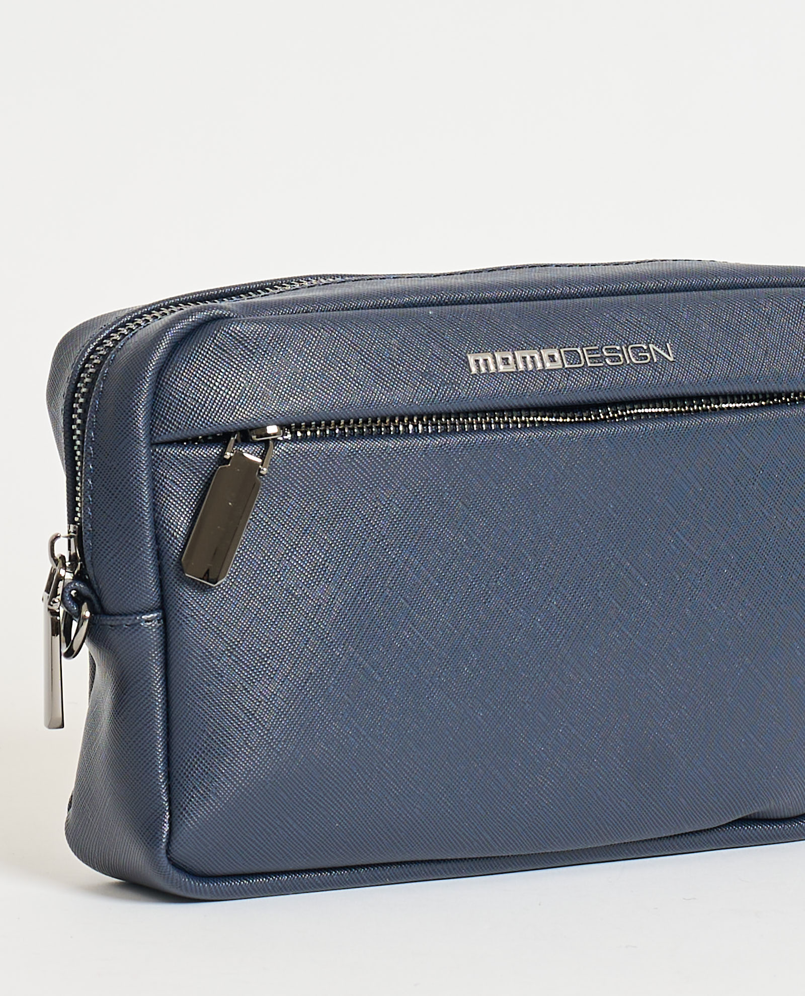 Pochette firmata Momodesign con chiusura e tasca frontale a zip. Logo metallico. Dimensioni: 23 x 16 x 3 cm.