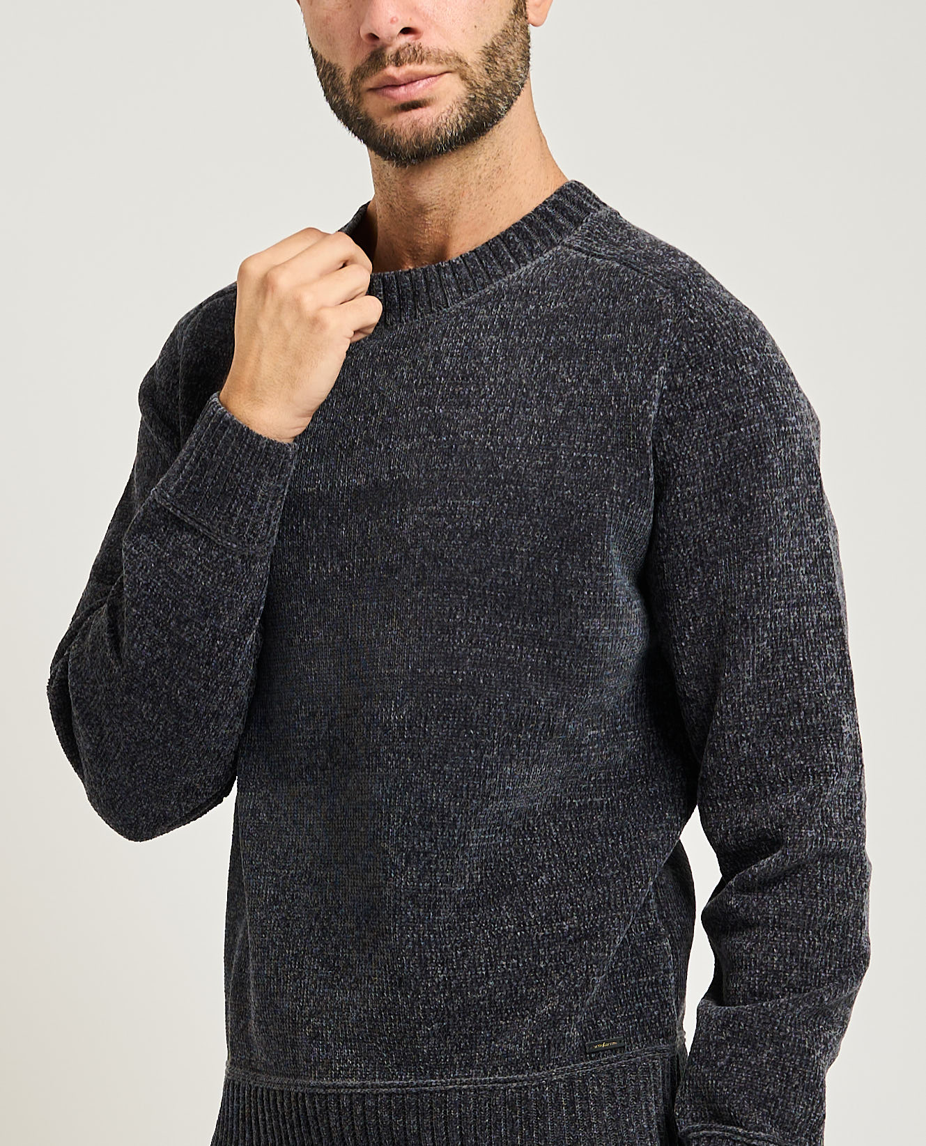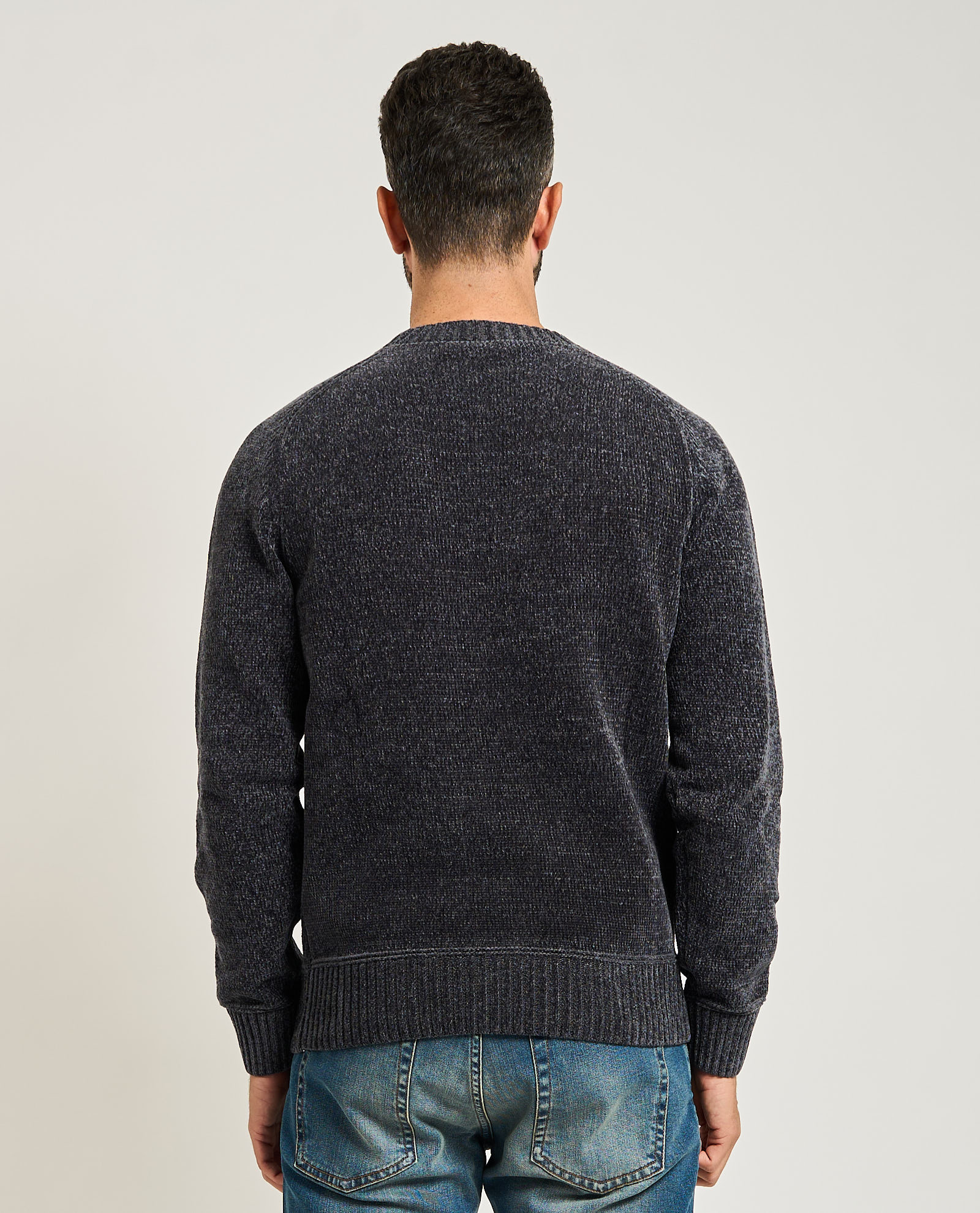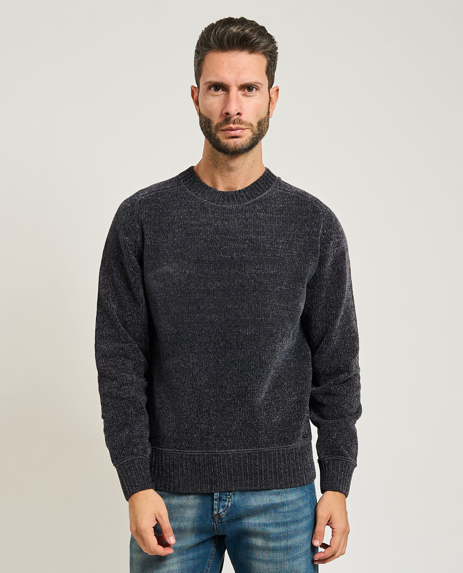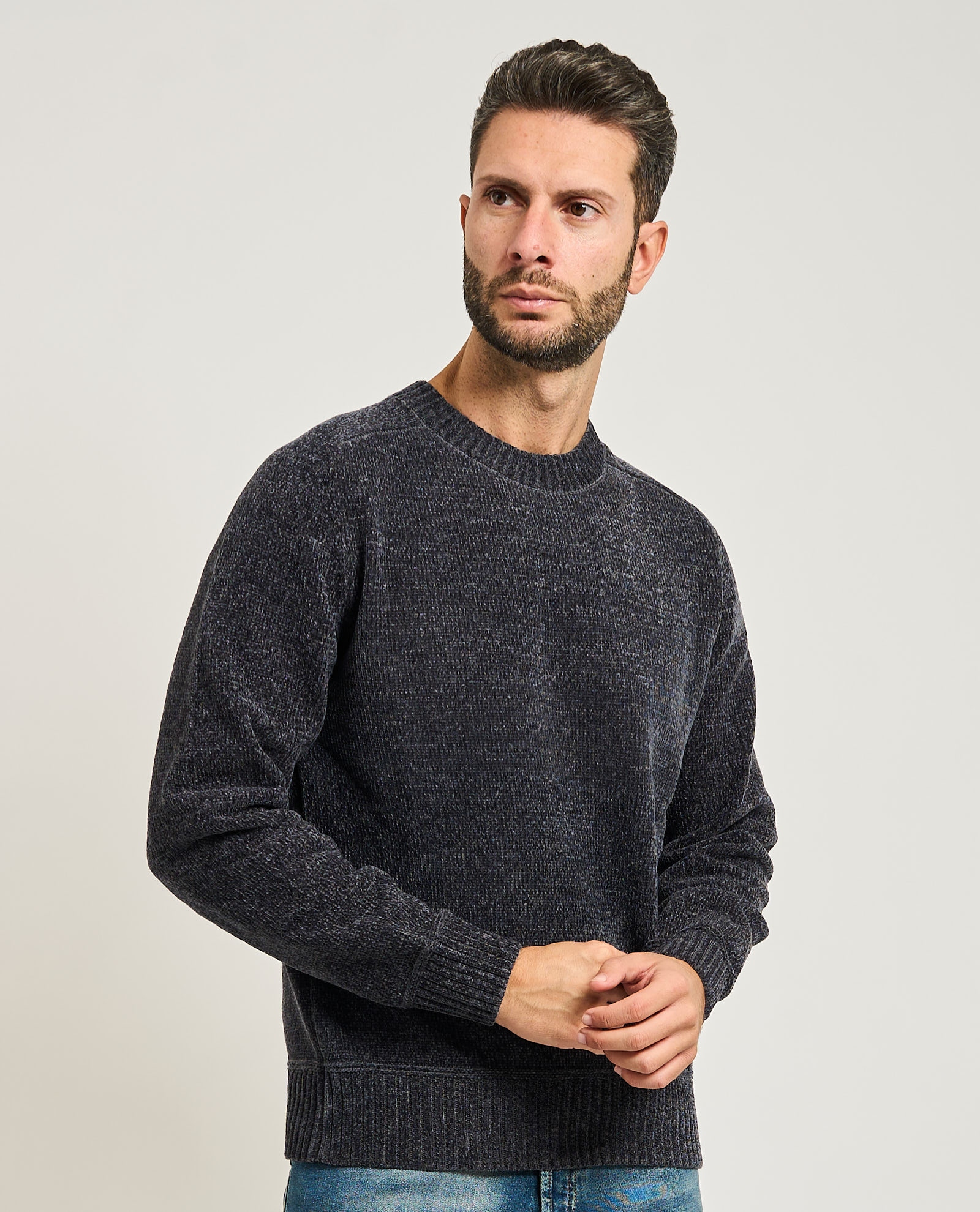 Maglione per uomo firmato Sette/Mezzo in tessuto misto. Girocollo, maniche lunghe, costine sugli orli, microlavorazione all over. Relaxed fit. Il modello indossa una M ed è alto 1.85m