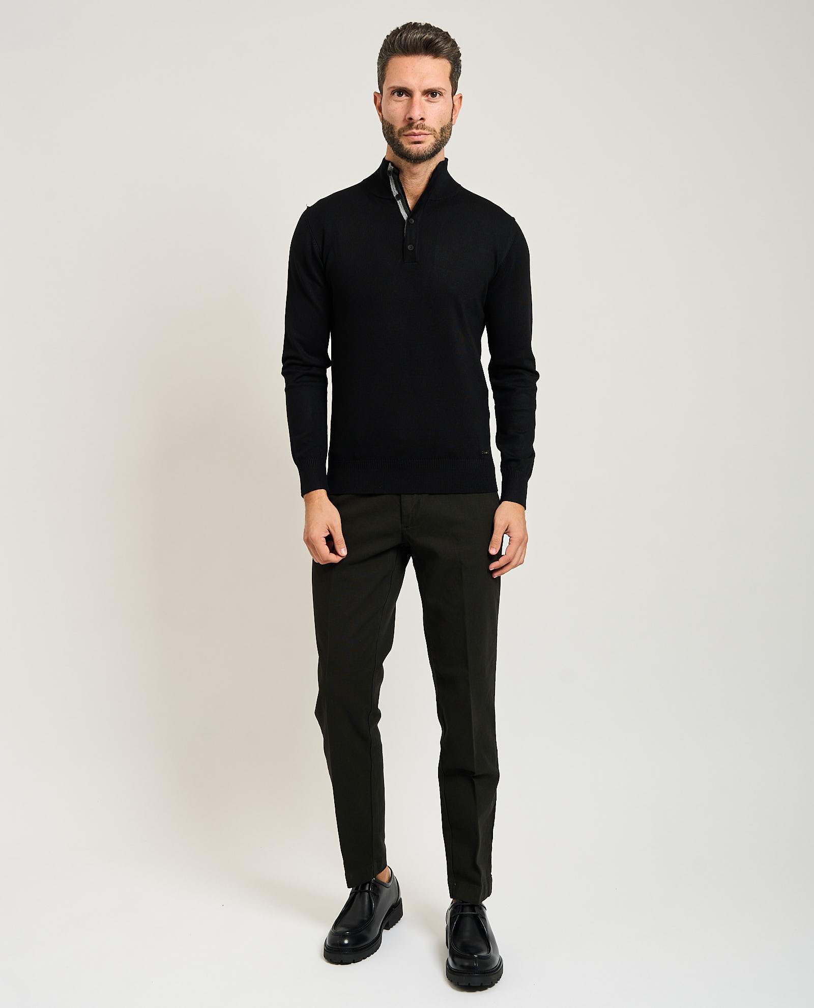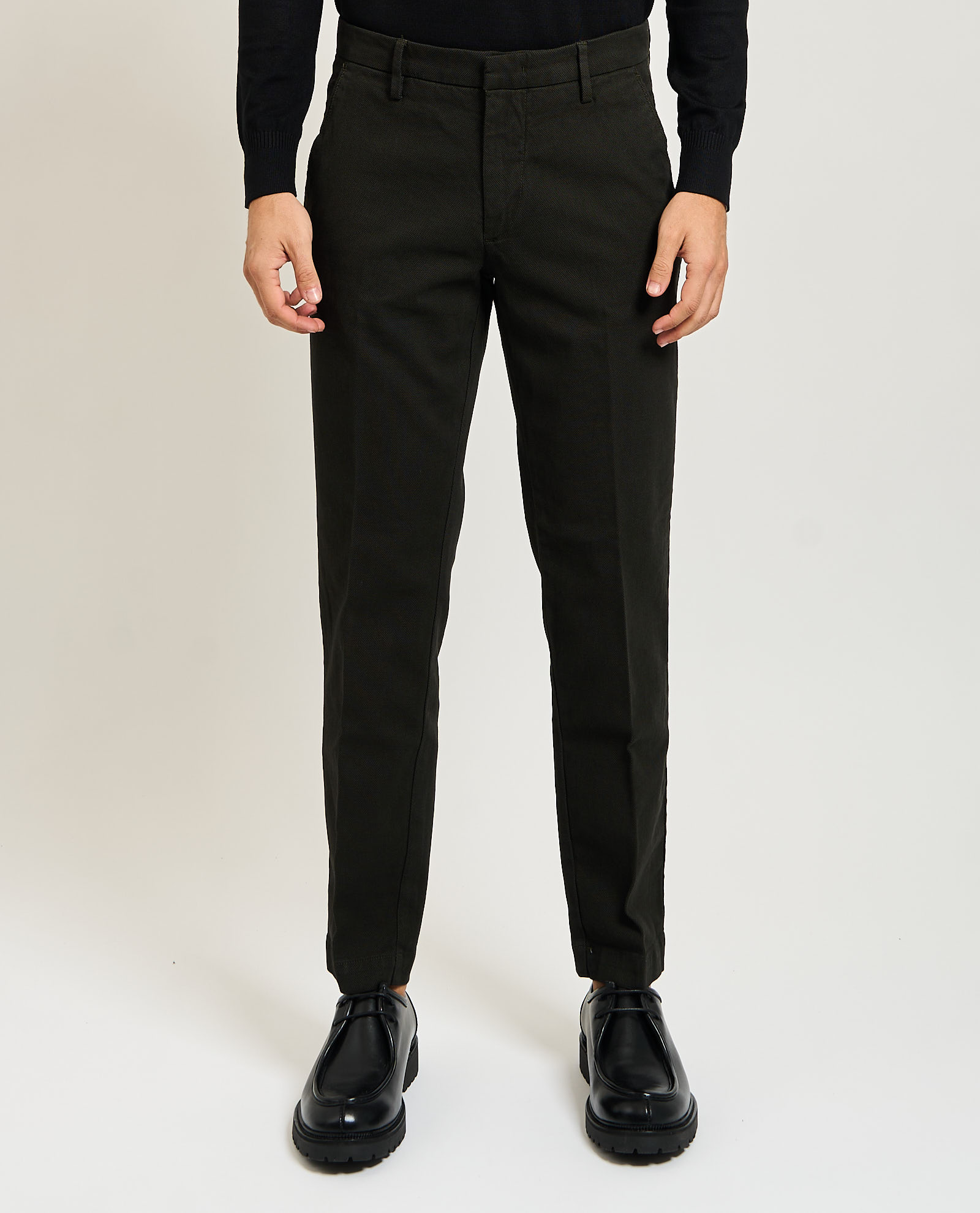 Pantaloni da uomo firmati Sette/mezzo in tessuto misto, effetto impunturato all over, passanti in vita, chiusura a scomparsa, tasche laterali e posteriori a filetto. Il modello indossa la taglia 34 (48 IT) ed è alto 1,85m