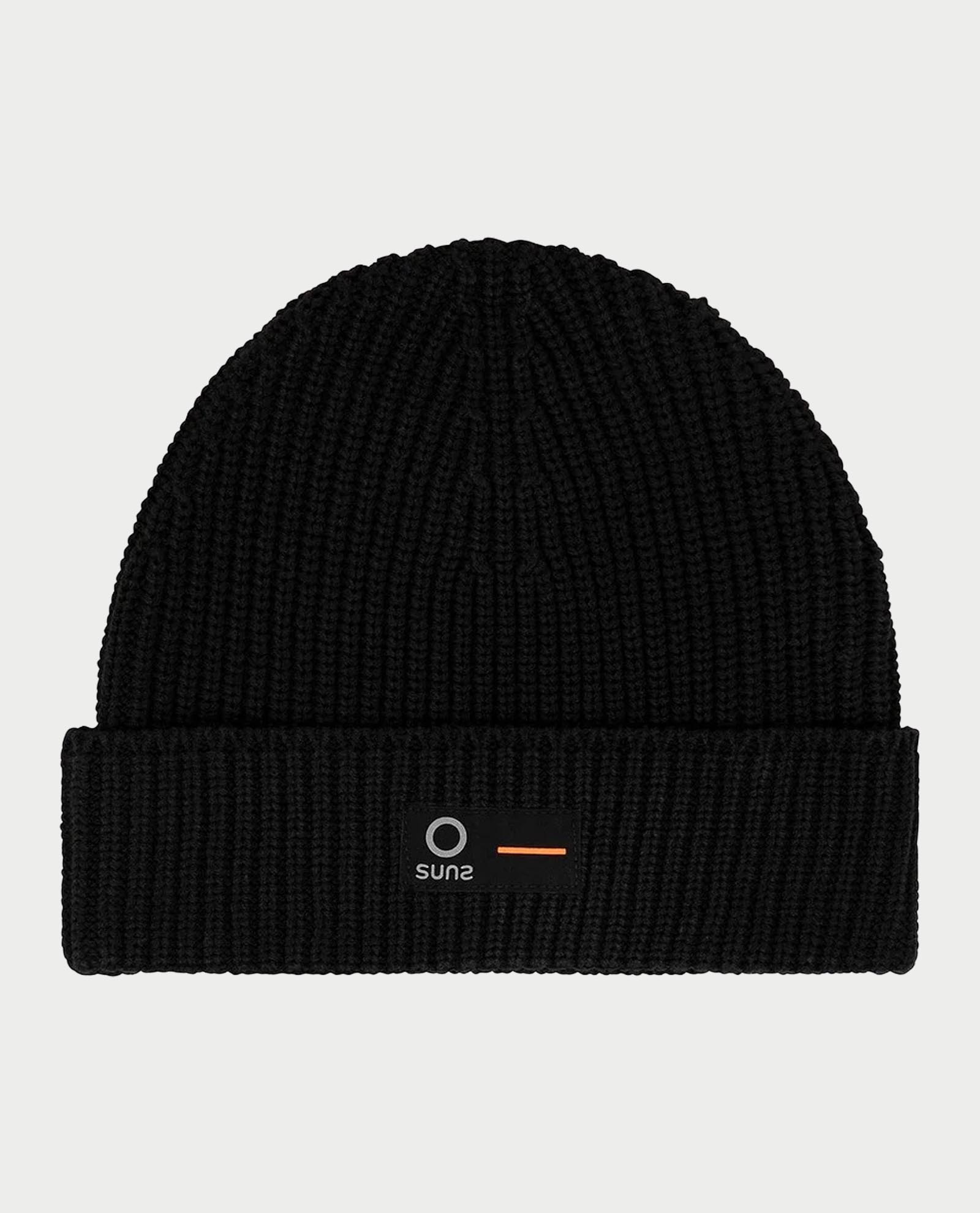 Berretto per uomo griffato Suns con lavorazione in maglia a costine all over. Risvolto e patch piccola logata sul davanti.