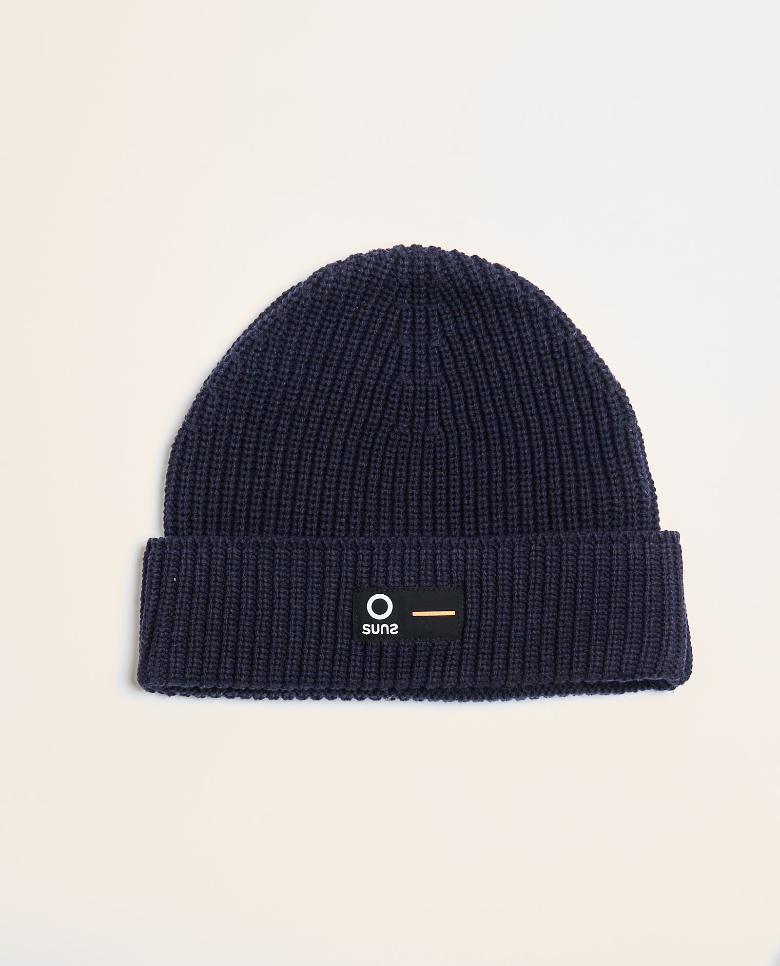 Berretto per uomo griffato Suns con lavorazione in maglia a costine all over. Risvolto e patch piccola logata sul davanti.