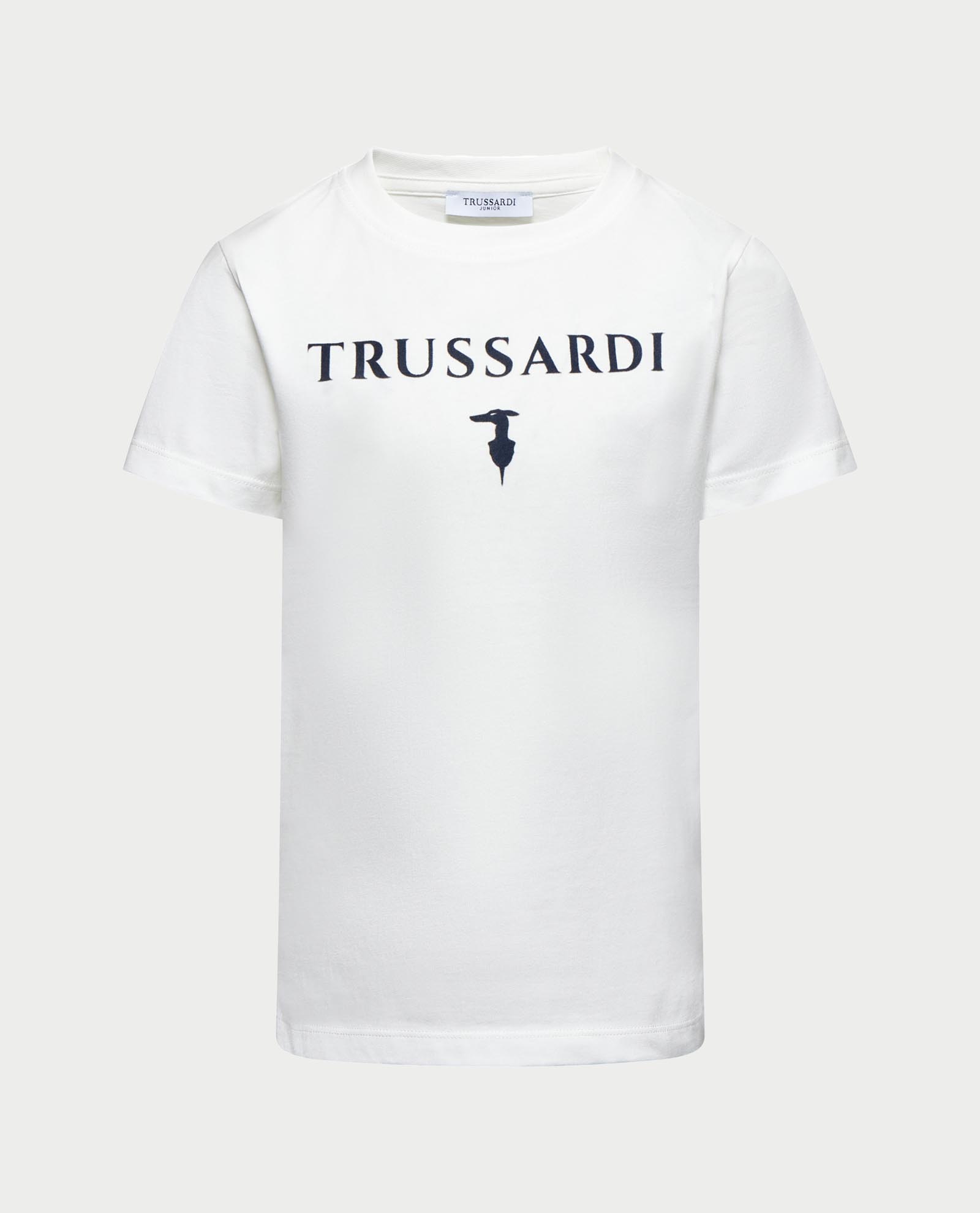 T-shirt bambinoTrussardi con logo frontale a contrasto di colore, girocollo e in tinta unita.
